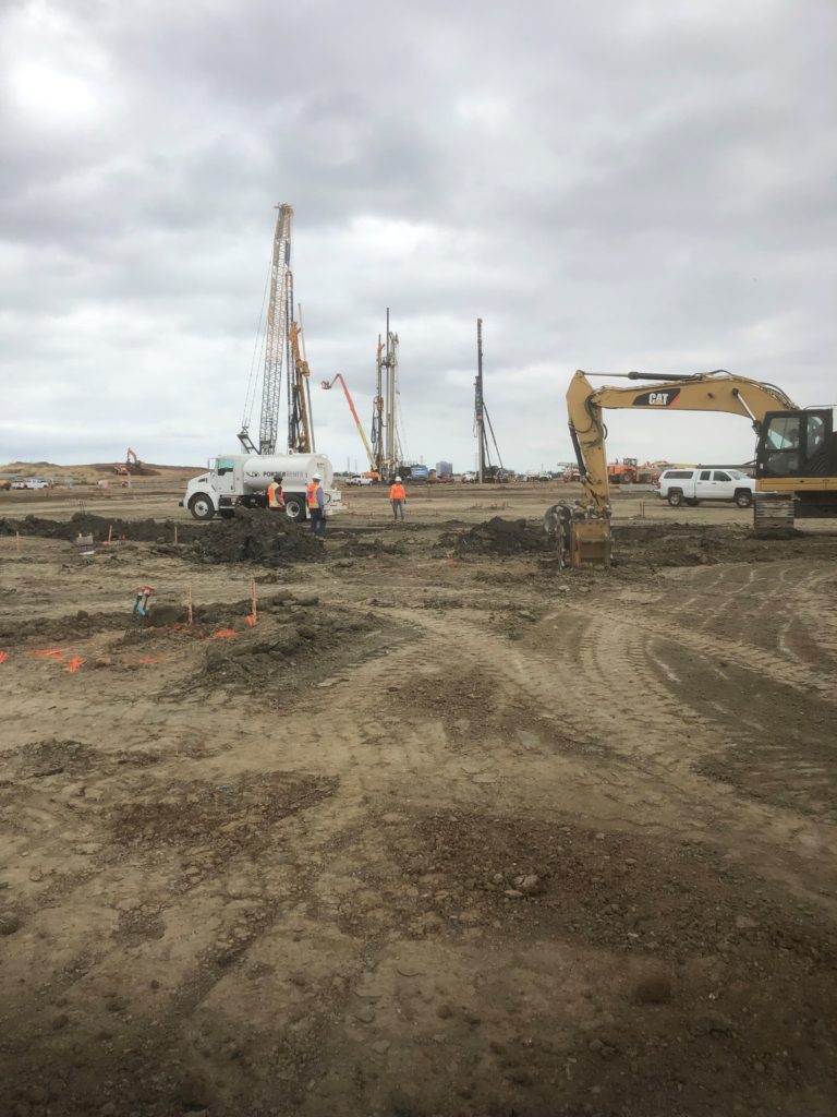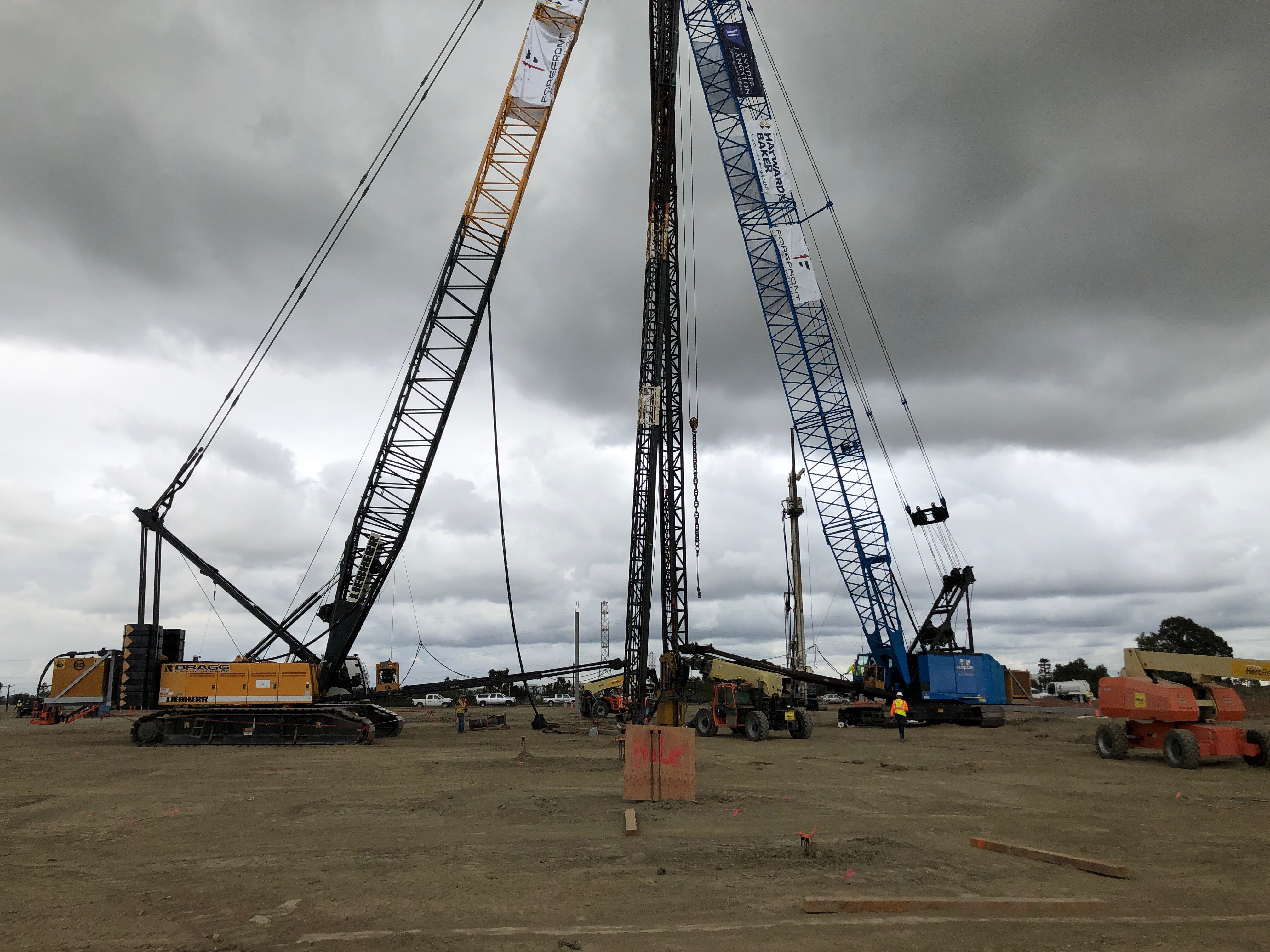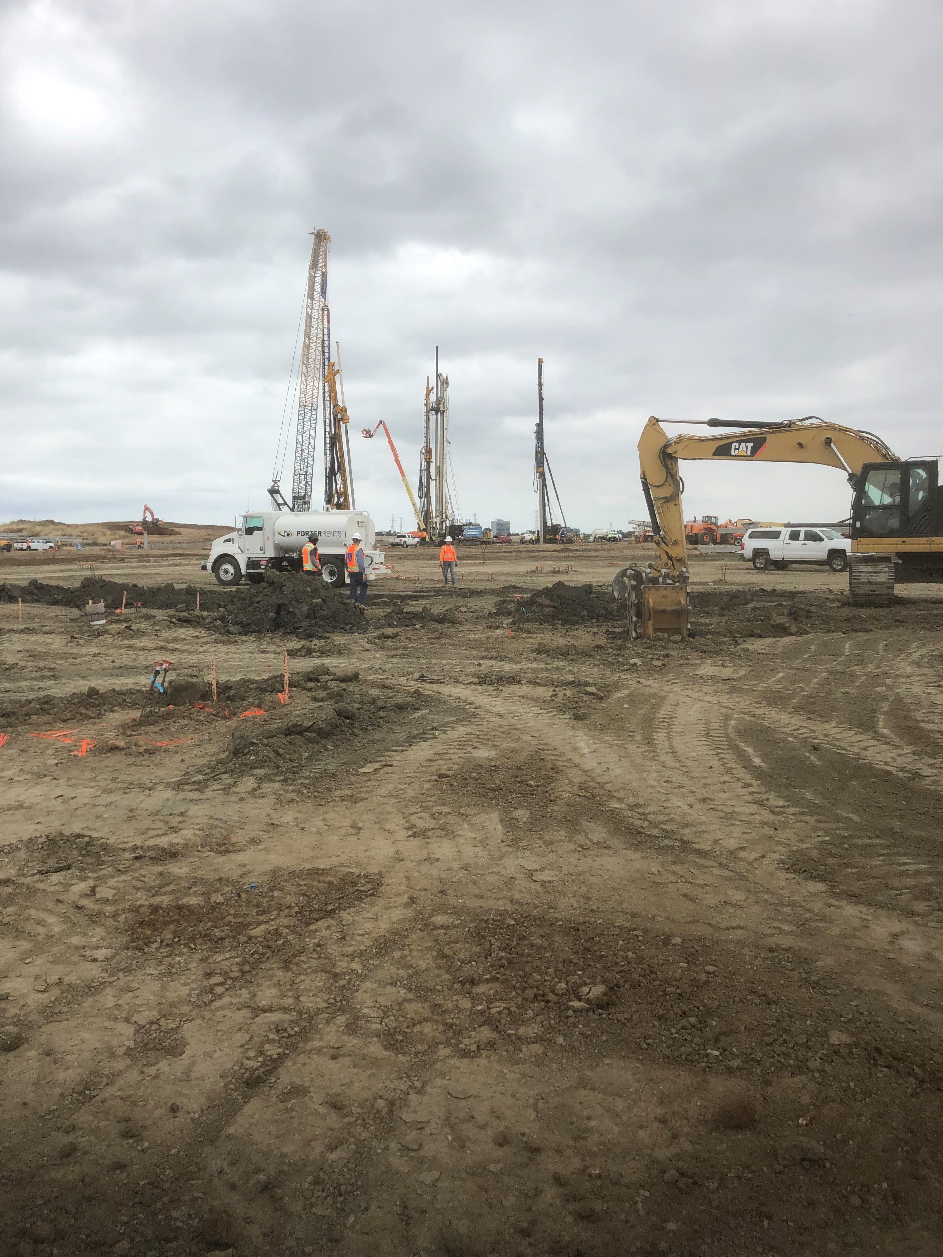 Site Photos Photo Gallery Pile drivers working Rebar cages being installed Cutting off pile Pile caps ready for concrete in A5 utility trench Gravel going in on top of GCCS piping DCIM\101MEDIA\DJI_0164.JPG