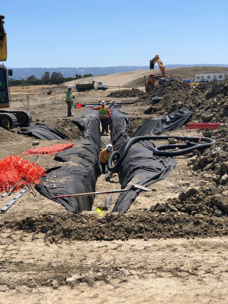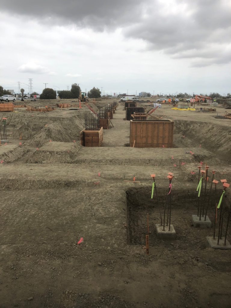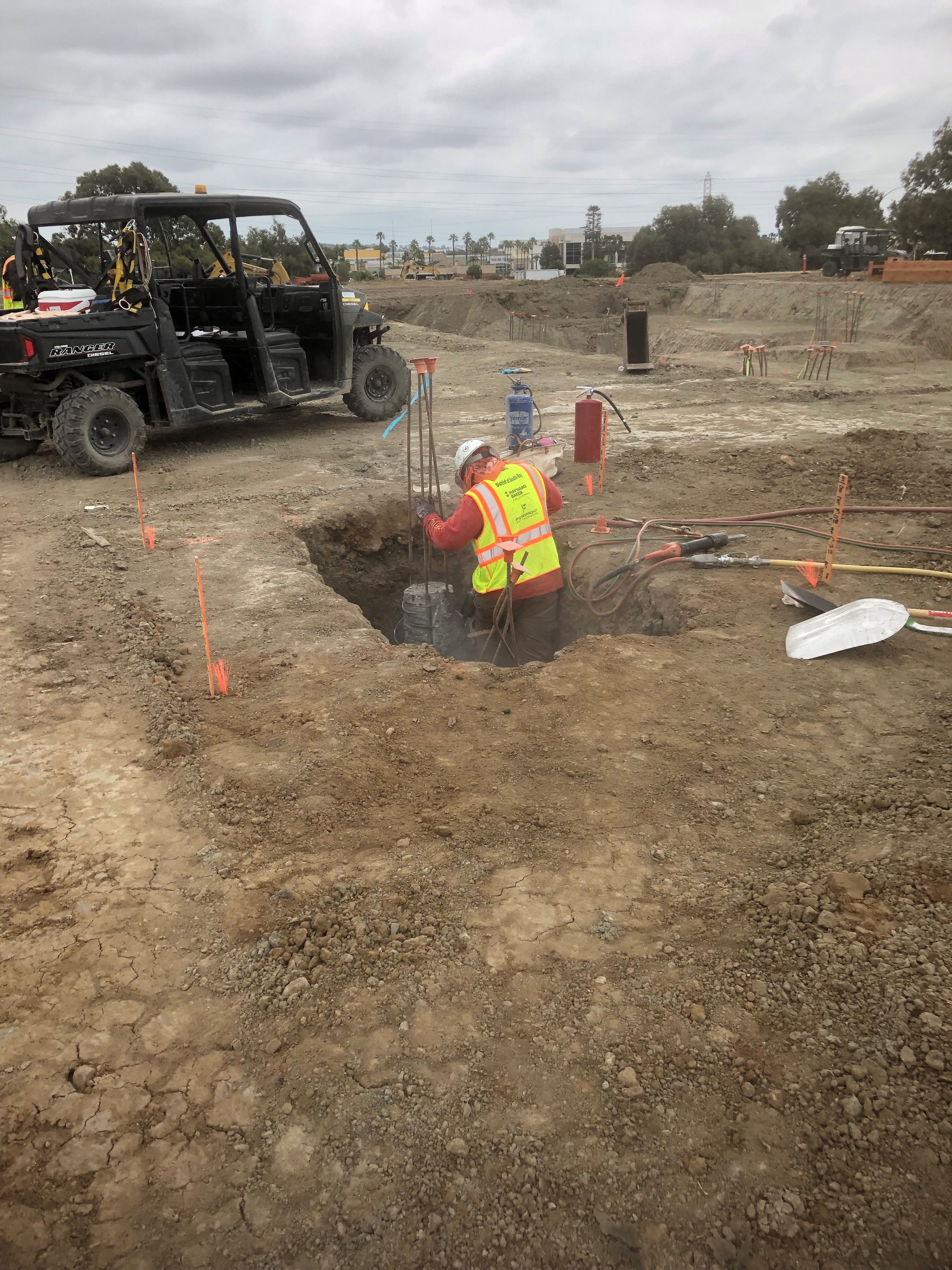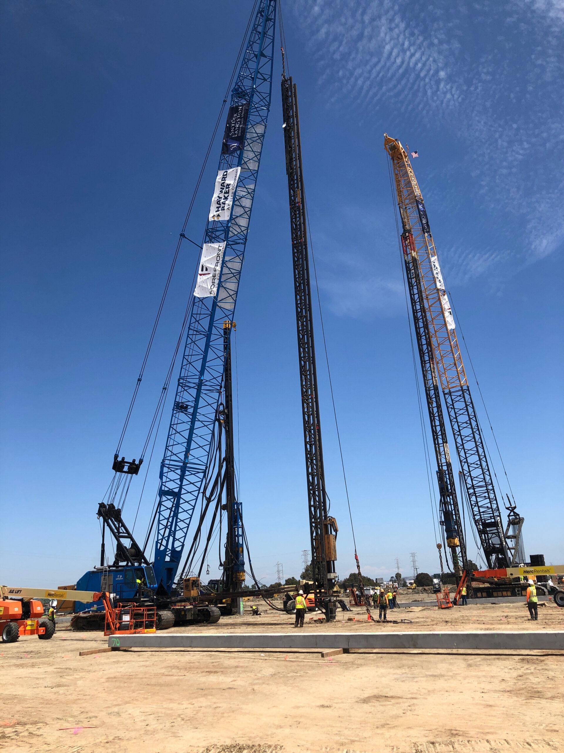 Site Photos Photo Gallery Pile drivers working Rebar cages being installed Cutting off pile Pile caps ready for concrete in A5 utility trench Gravel going in on top of GCCS piping DCIM\101MEDIA\DJI_0164.JPG